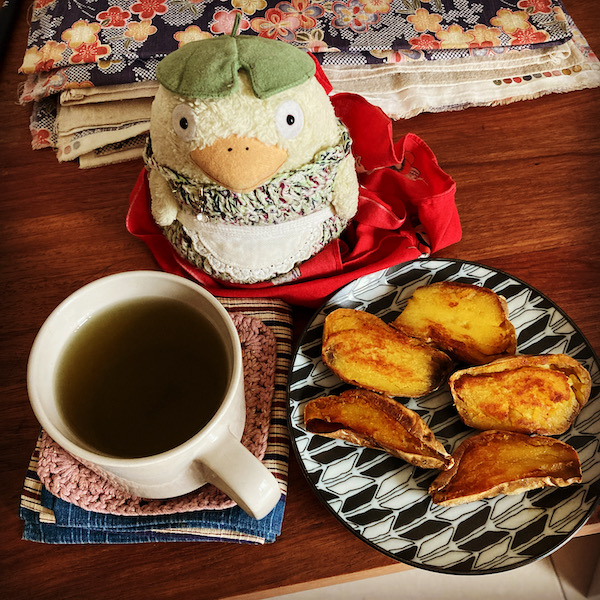 朝ごはんに昨日の残りの芋をバターで焼いてきました。