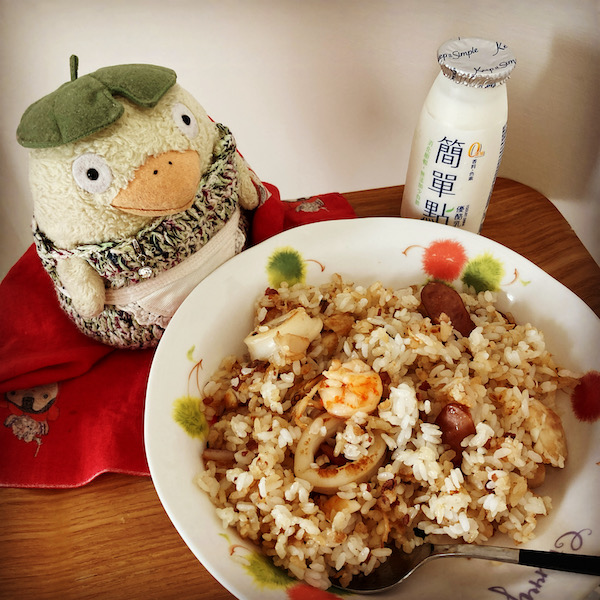 コーヒーブレイクも済み、再び語学&読書して、お腹空いてきたところで朝解凍しておいた西洋チャーハンと、味を薄めるための冷凍ご飯を一緒に炒めたやつ食べました。