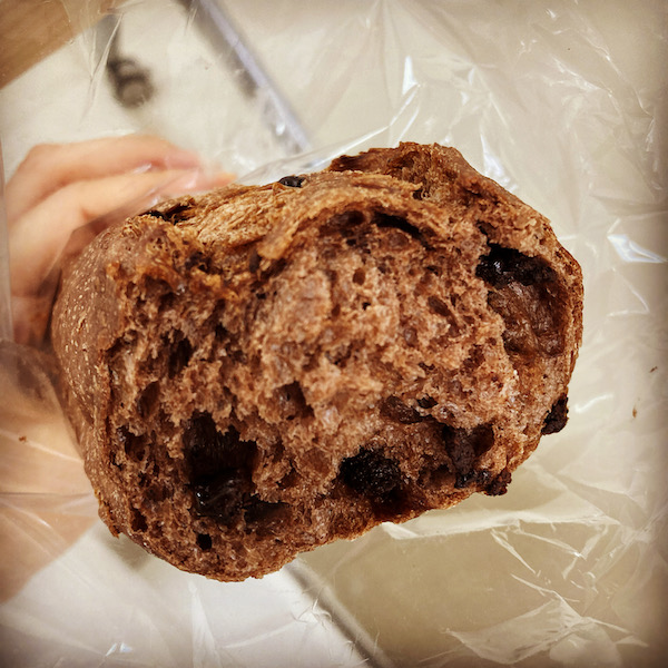 生地はフランスパンなので甘くないし、たまにチョコチップの甘味があるだけで、とても程よい!これは私が好きなパン!