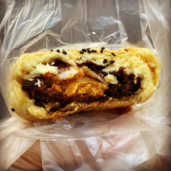 あんこ、もち、黄身の塩漬け、肉鬆が入っていて甘じょっぱい系です。めちゃうま!!