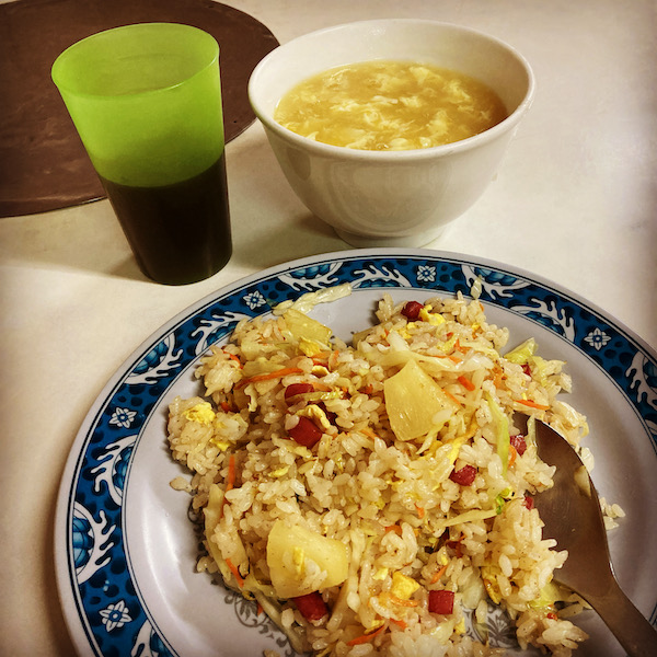今日はパイナップルチャーハンとコーンスープ。