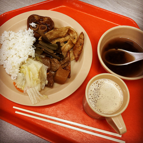 今日は豚足の煮込み?と、練り物の細切りを揚げた感じのものでした!