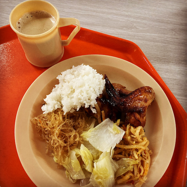 今日のご飯は何かな〜。と食堂に行ったら、メチャ混んでる!おそらく規模が大きい結婚式か忘年会でもあったのでしょう、一気に人が食堂に!!並んでおかず取る感じに。