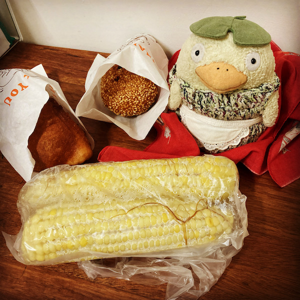 ドーナツと、リン先生が育てたとうもろこし。
