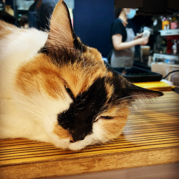 そのお店の隣の廟に行って参拝し、近くの市場もプラプラっと見て、予定していた猫ちゃんが居るパニーニのお店へ。9時オープンで5分前くらいに着いちゃったので、近くで座って待ちました。