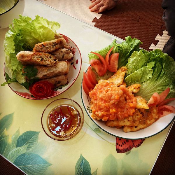 春巻きも3個余って、みんな要らないの?って聞いたら、何回も食べてるから、って〜。ベトナムの定番料理なのですな。