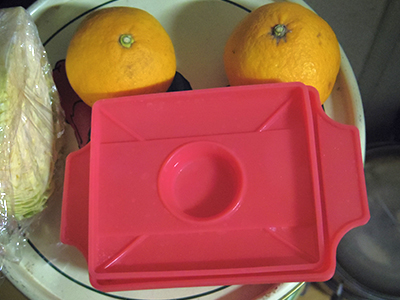 ![]() ザルに残ったキャベツのカケラが顔・・・。 |