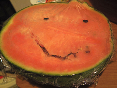 ![]() 笑っているスイカ。 |