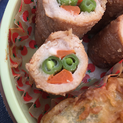 ![]() インゲンとニンジンで顔。 |