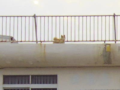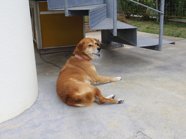 ![]() カフェの向かいのペンションに居たワンちゃん。耳は違うが、柴っぽい顔。 |