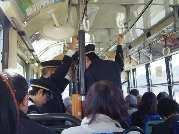 1台のバスで割とギッシリ乗車。なぜだか駅員さんも5人ぐらい乗り込んできたー!