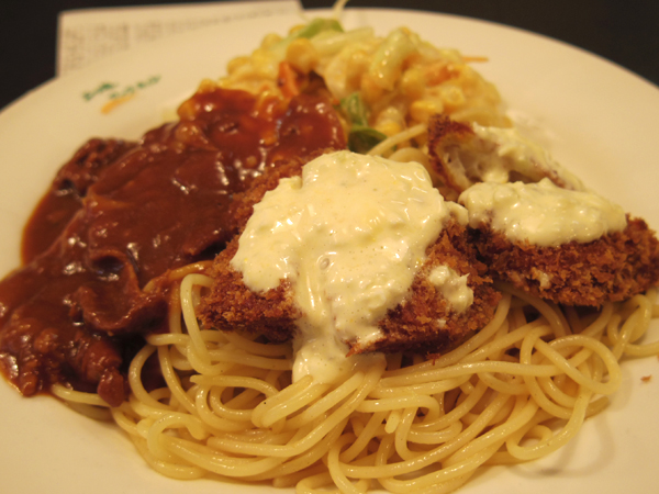 ![]() バターしょうゆパスタ+白身魚フライ+ハヤシライス |