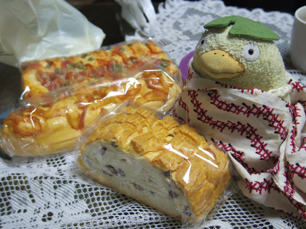 チーズが乗ってるパンと、桜でんぶ的なほんのり甘い魚肉加工品がちらしてあるパンと、