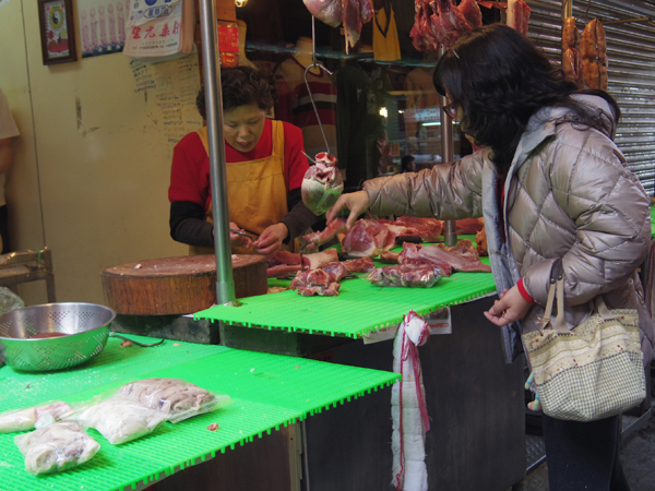 ![]() 「これをくださるかしら?」と、肉を手づかみしている主婦の方。 |