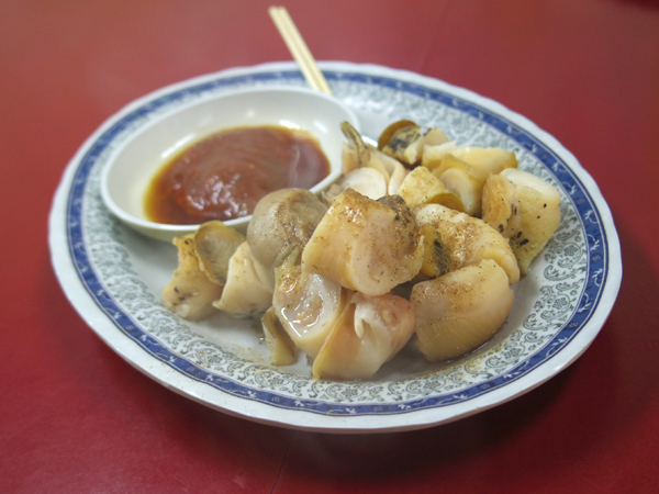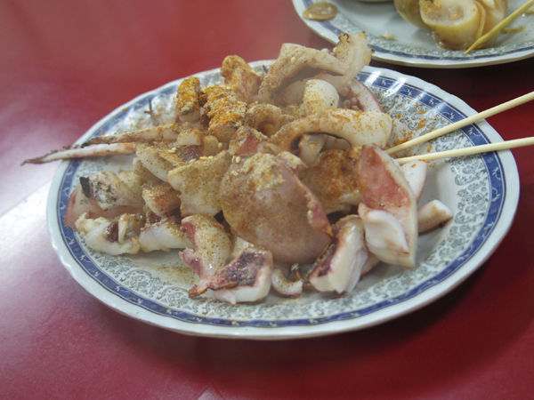 イカとか貝とか焼いて売ってる店があったので、そこで食べていくことに。