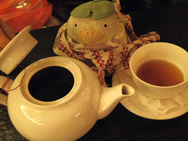 あったかいお茶もらったので、パンの置き場なし。