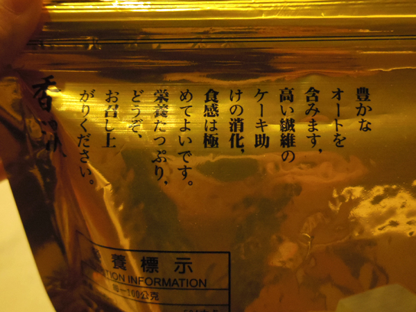 | 「チーズのビスグツト」 「精選した材料を使つておいしいくだものです」 「豊かなオートを含みます、高い繊維のケーキ助けの消化、食感は極めてよいです。 栄養たっぷり、どうぞ、お召し上がりください。」 はい。おいしいかもしれませんが、くだものではないです。 |