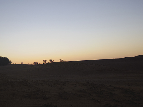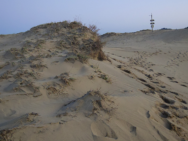 低めの木が生えている斜面に、登れる道があって、その向こうが砂丘!