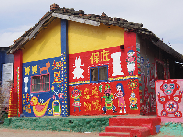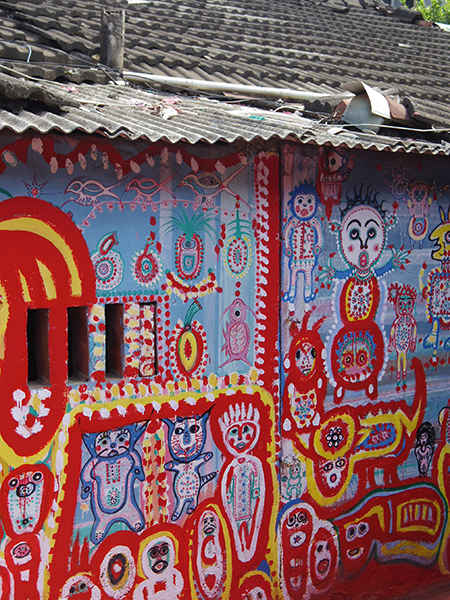 50元損しつつも、無事に荷物を預けられたので、タクシーに乗ってレインボービレッジ(彩虹眷村)へ!ここもナツミちゃんが調べてくれた素敵スポットなのですが、かつてあった村が取り壊されることになり、壊すなら最後に絵でも描いちゃおう!とひらめいたお爺さんが居て、壁やら道やらに絵を自由に描いたところ、それが評判となって、村は取り壊されたものの、おじいさんが絵を描いた部分は、公園として残ることにー!というような村です。ざっくりまとめますと。