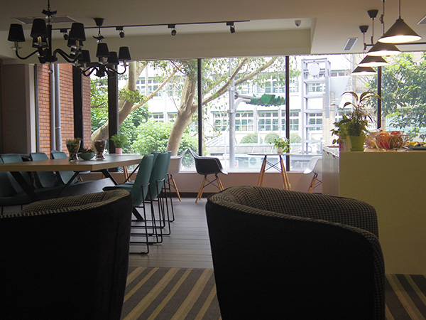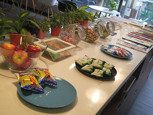 ![]() 自由にいただいてよいお菓子&フルーツ。 |