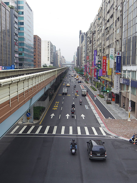 文湖線の駅のホームから、メッチャまっすぐな道が見えた。