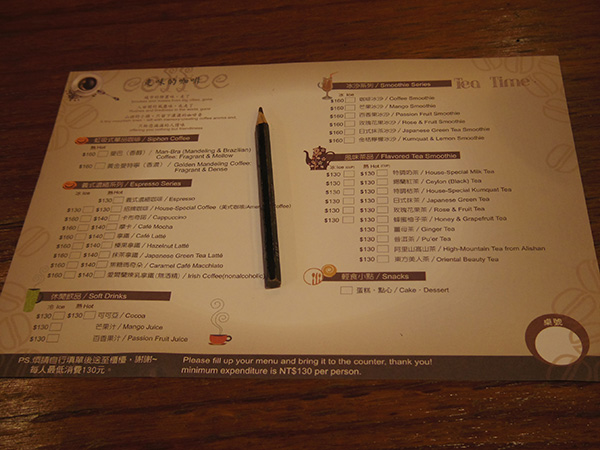 ![]() メニューは記入式でした。(このシートの日本語版があります~) |