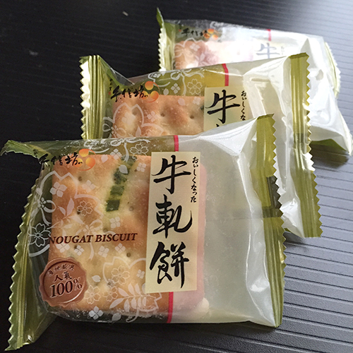 ![]() ネギクラッカーにヌガーを挟んだもの。 |