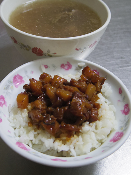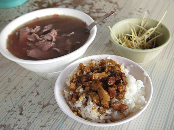 ![]() ルーローファンと、牛肉湯。130元 |