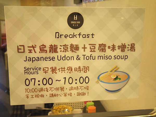 うどんは自分で醤油やフルーツビネガーをかけて味付けるスタイル。トッピングでコーンとネギが置いてある。味噌汁はワカメと豆腐が入っていて、味がとても薄い!私にはちょうど良いけれど~。台湾は基本的に薄味が多いからありがたい。。