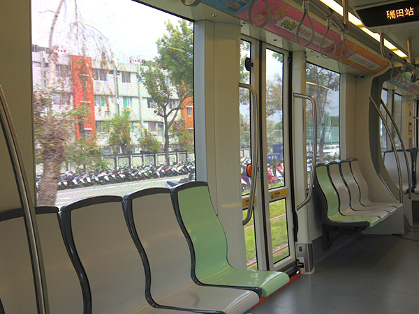![]() ライトレールの車内。 |