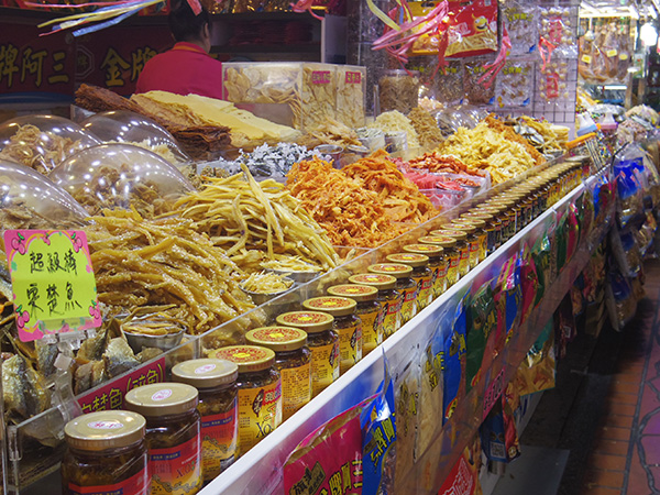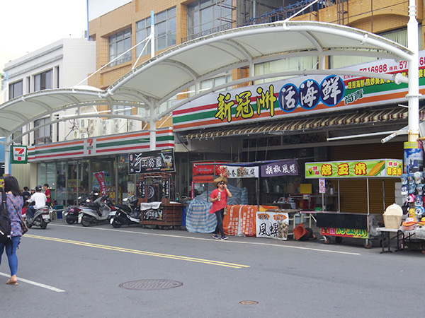 また端の駅から反対方向に乗って、スタート地点の駅に戻ってきました。そこから地下鉄に乗って西子湾駅へ。駅から10分ほど歩くと、旗津行きの船の乗り場がありました。乗り場に着いて船に乗ったらすぐに出発な感じだった!乗船時間5分ぐらいなので、あっという間に到着。橋をかけてくれたら歩いて渡れるくらいの距離!船を降りたら色々お店があって、ぷら~っと見てみました。でも今日は平日だからやっていないお店もありそげ。お昼ごはんに魚麺っての食べたかったのですが、その麺が食べられるお店を事前に調べて来なかったので、バッタリ出会えたらいいな~ぐらいの気持ちでテクテク。