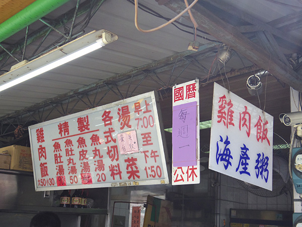 ひたすら歩き続けてたら、お店が増えてきた!お店が沢山ありすぎて、逆に困っちゃうパターンだ!と、キョロキョロしてたら、市場が登場ー!わあ!素敵!市場をぷらーっと見てたら、その一角にとても活気あるご飯やさんが。鶏肉飯のお店だ!これも食べてみたかったメニュー!お昼ごはんはここにしよう!並んでる人が居たので並んだら、そこは持ち帰りの列だったらしく、中で食べたいと行ったら席に案内されました。お店ごとに注文のシステムが違うので戸惑いますね~。小サイズの鶏肉飯と、魚丸湯(魚団子スープ)を注文。これがーーー!もう最高にメチャうまーーー!!パクチー最高!!これはもう感動的な美味しさだった。