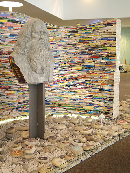 ![]() 本を積み重ねたオブジェ。銅像みたいなやつも、本でできてる! |