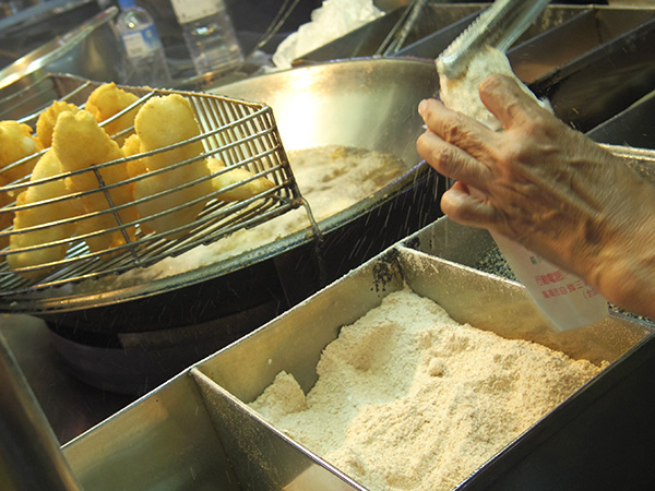 ![]() ピーナツor胡麻のパウダーをまぶしてくれます。 |