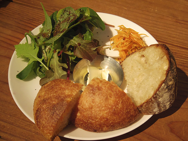 サラダ・キャロットラペ・天然酵母パン・飲み物、というモーニングセットがあって、それにしちゃいました。さっきパン食べたけれど。。