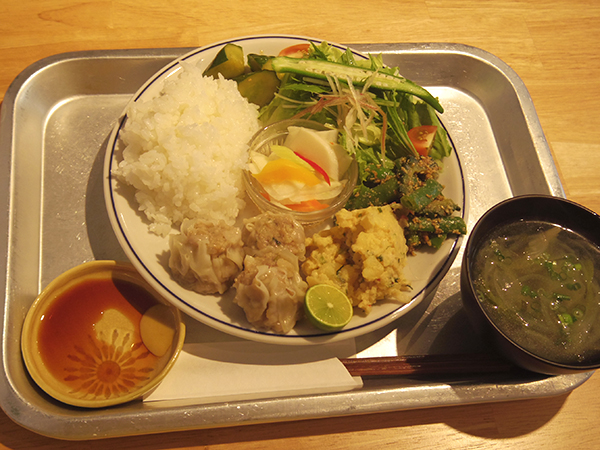 ランチのメニューは、タイカレーと、ルーローファンと、クワイ入りシュウマイのプレートがあるらしい~。全部気になりますが、クワイ入りのシュウマイなんてのはなかなか食べられない!と思って、シュウマイのプレートにしました。それで、やってきましたのがこちら。