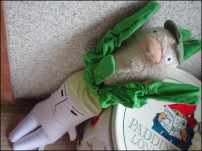 ![]() 寝てる弟の膝の上にタワー。 |
