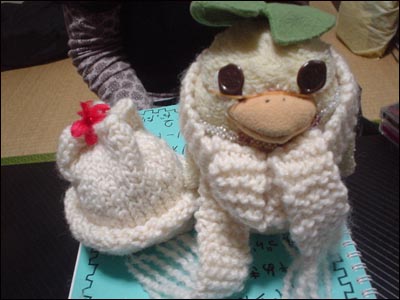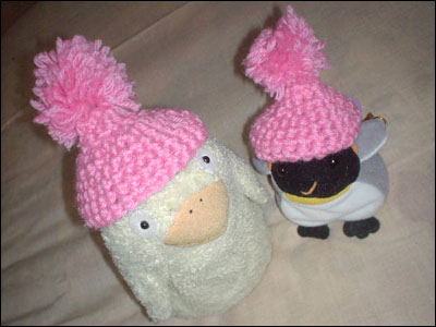 ![]() おそろいの帽子。 |