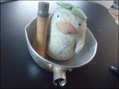 ![]() 取っ手が取れた鍋で一寸法師ごっこ。 |