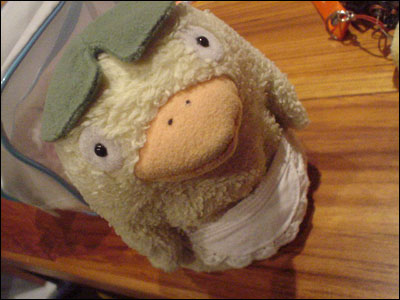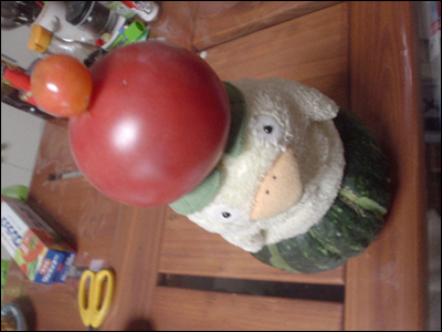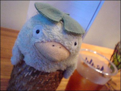 ![]() お皿を頭に乗せてみました。 |
