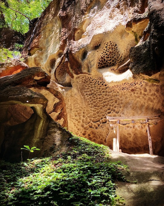 この岩の隙間にも仏像的なのが祀ってある。(写真だと暗くて見えない)