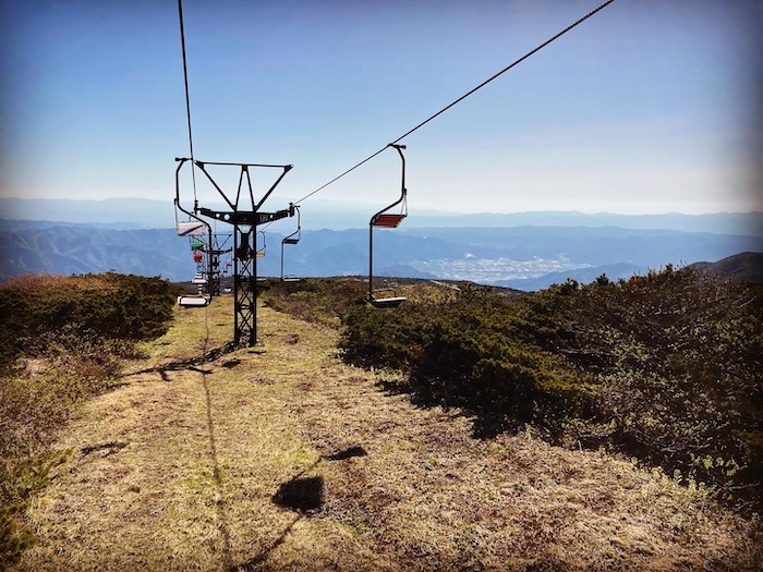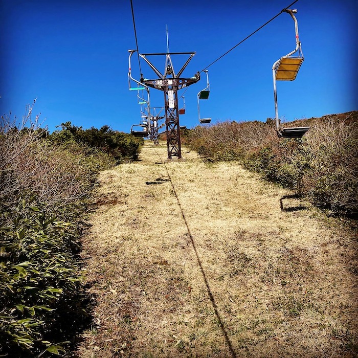 刈田リフトってのに乗れる駐車場に到着。1人乗りのリフトに乗って上に上がるんだ〜。スキーする時に良く乗ってたタイプのリフトなので私が最初に手本を見せる。乗ってすぐのとこにカメラマンの人が待ち受けてて、「こんにちは〜、写真撮らせて下さい〜」って声かけてきて、あ!観光地でよくある、一方的に写真撮ってきて現像して販売するやつだ!まだあるんだ!?と思い、「写真は大丈夫です〜」と、断る。笑