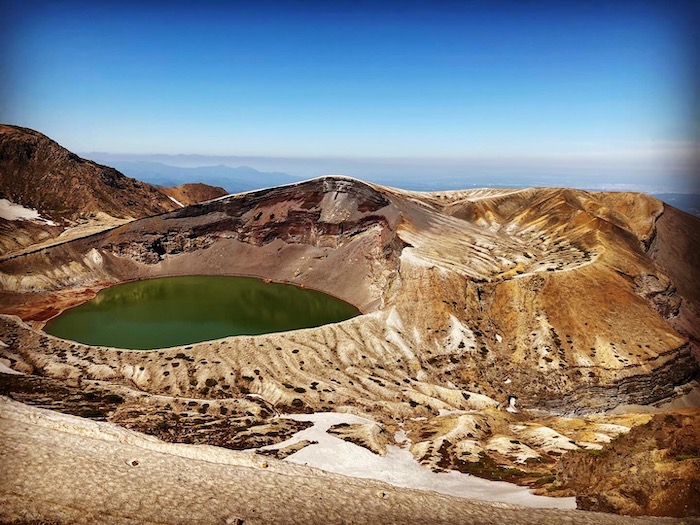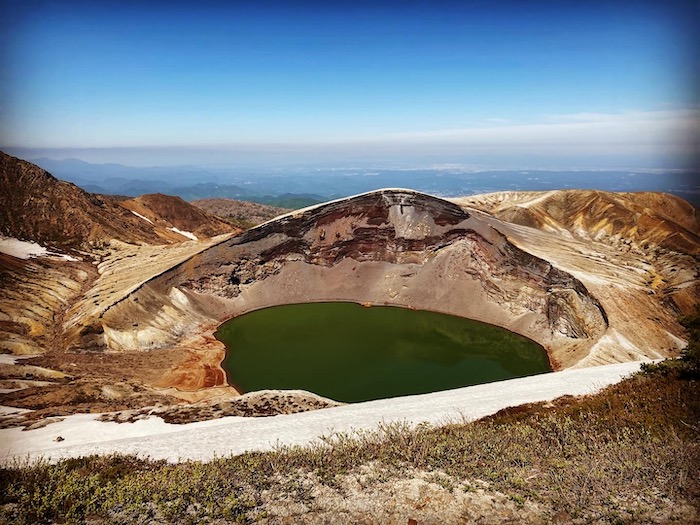 ずいぶん前だけど、蔵王のおかまが干上がってしまった、みたいな時あったよなあ〜。今はたっぷりお水ありました。メッチャ快晴でよかったです。今の季節、暑くも寒くも無くてちょうどいい。太陽が当たる面が暑くて、当たらない面が寒いって感じでしたけれども。歩いてると上着いらない!ってなるぐらいの温度でした。