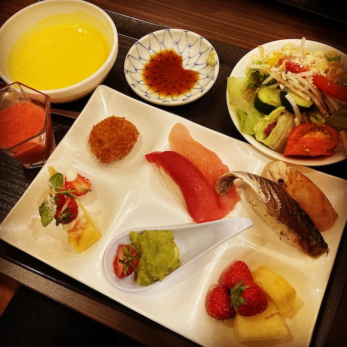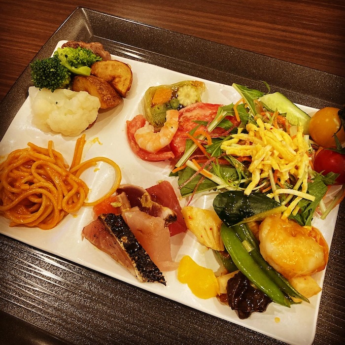 晩御飯はビュッフェスタイルで自由に取って食べるやつでした。