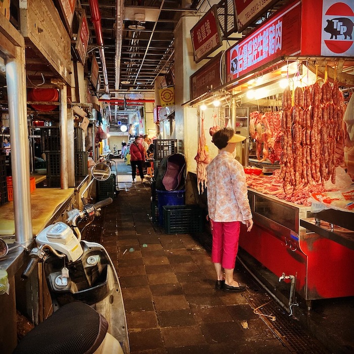 家の近所の夜市までタクシー移動。