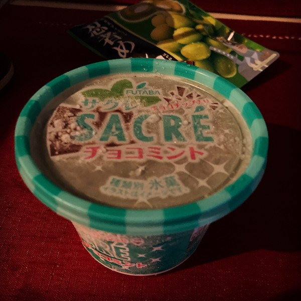 22時に終わって帰る〜。ミカンハウスの最寄駅に着いてから、ファミマでお買い物。明日の朝食べるもの調達。パン買おうかと思ったが、マフィン屋さん行くから粉物はやめておく。汁物とかき氷買いました。サクレのチョコミントなんてあるんだ!?
