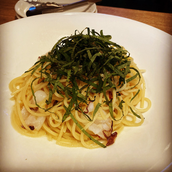 あおさが練り込んであるボール状のミニピザってのがあって、それがモチモチでめちゃ美味しかった!ニョッキみたいな感じだけど、ピザ生地を揚げたやつらしい。