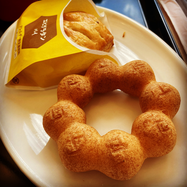 16時ぐらいに坊ちゃん(弟)が東京から山形新幹線で到着する予定で、それまでまだ時間があるからミスドでお茶する。お昼ご飯さっきオニギリ少し食べただけだから、何か食べよう。