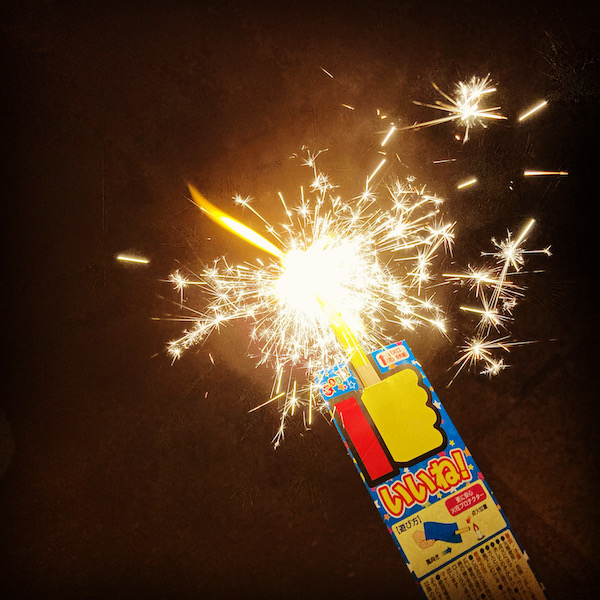 母と坊ちゃんと私でやってましたが、途中から父も来て4人で一緒に火をつけて花火を楽しみました。