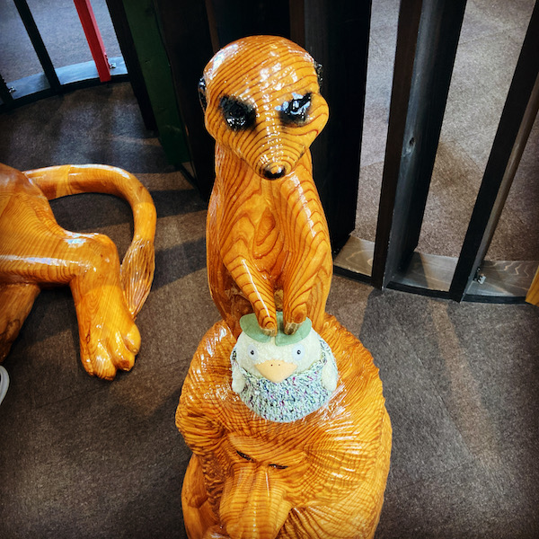 木彫りの像があったので、トリさまを紛れ込ませてみる。